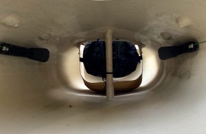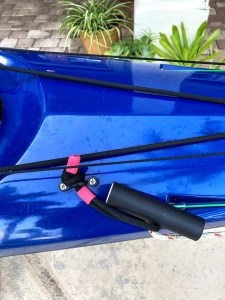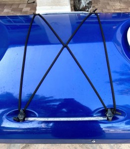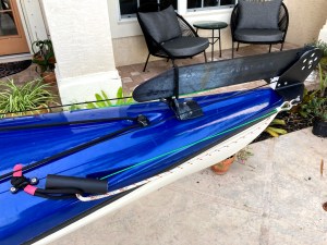 I had a hard time reading the worn away decal on the bow deck of the tandem, but found a better manufactured mark on the rudder blade. It was a Point 65 North. Seaching the internet, this turns out to be Swedish made. I went onto their website, uploaded the images and they identified it as a K2R model.