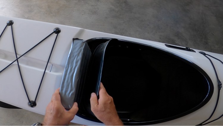 Eviscerating the life vest revealed these nice layered pieces of foam. I cut the ears off and then wrapped the block in duct tape. It sits perfectly on the ridge of the back rest and provides me ample support for long distance. If I get to a shallow sandbar and want to practice some rolls, I can reach behind me, pull out the block and store it away. I am on my second block. After awhile, It starts to compress, but at $1 a life visit at a local garage sale, I can get two blocks out of it. The goal is to not have to use these at all, but it is a race against time and I’m not getting any younger.
