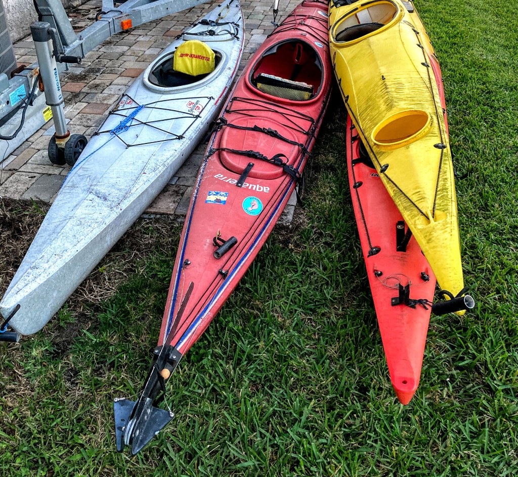 I recently picked up four awesome (used… highly used) kayaks in two purchases. The first purchase was of the Aquaterra Sealion (red 1991) and the Spectrum (white 1998), both under the Perception brand. The next day, a neighbor spotted two kayaks on Marketplace and so we checked these out. They turned out to be two great boats: Perception Shadow (yellow 1998), with it’s stunning lines, and a Perception Elite Sealion (red/yellow 1999) with a slightly larger volume than the Shadow. Now the fun begins, so check the Progress under the ‘Projects’ Menu folder.
