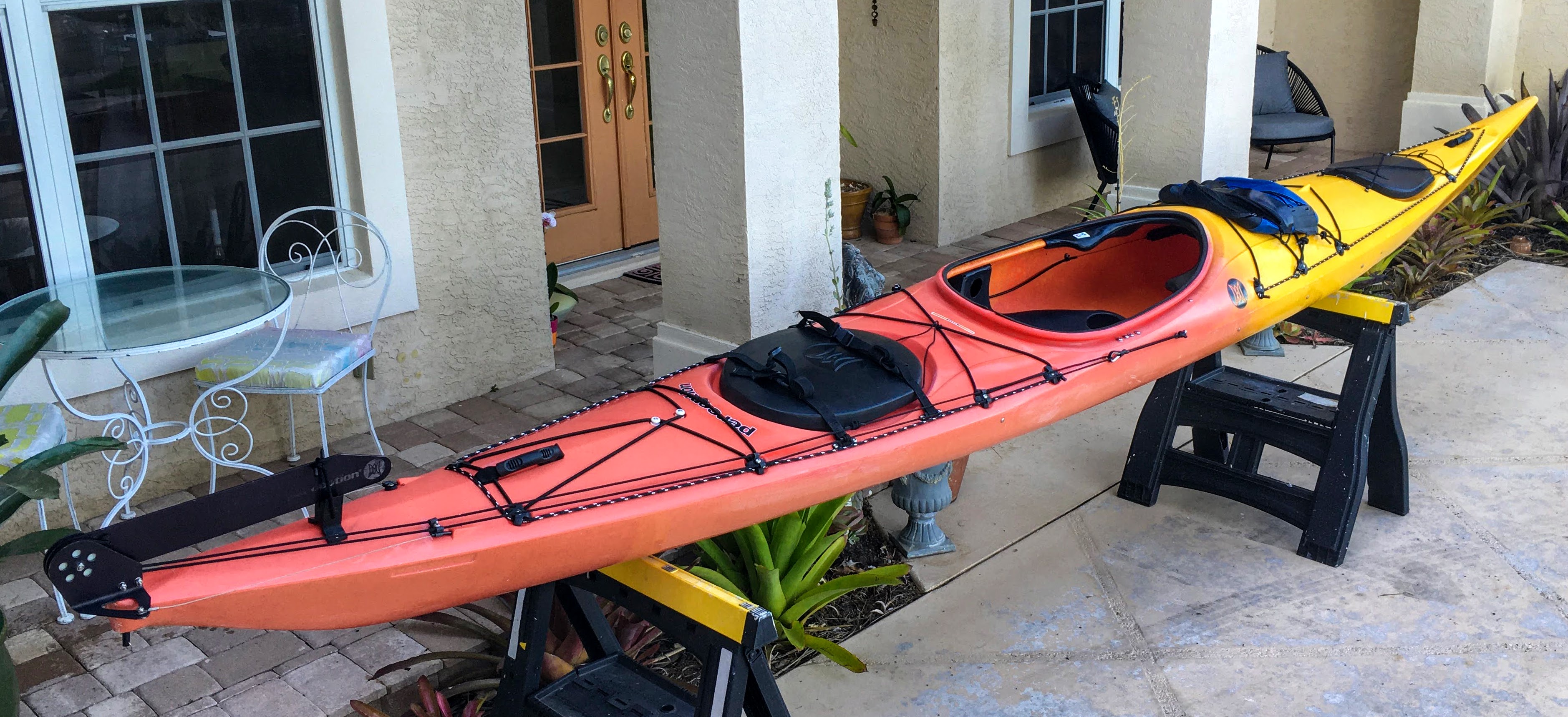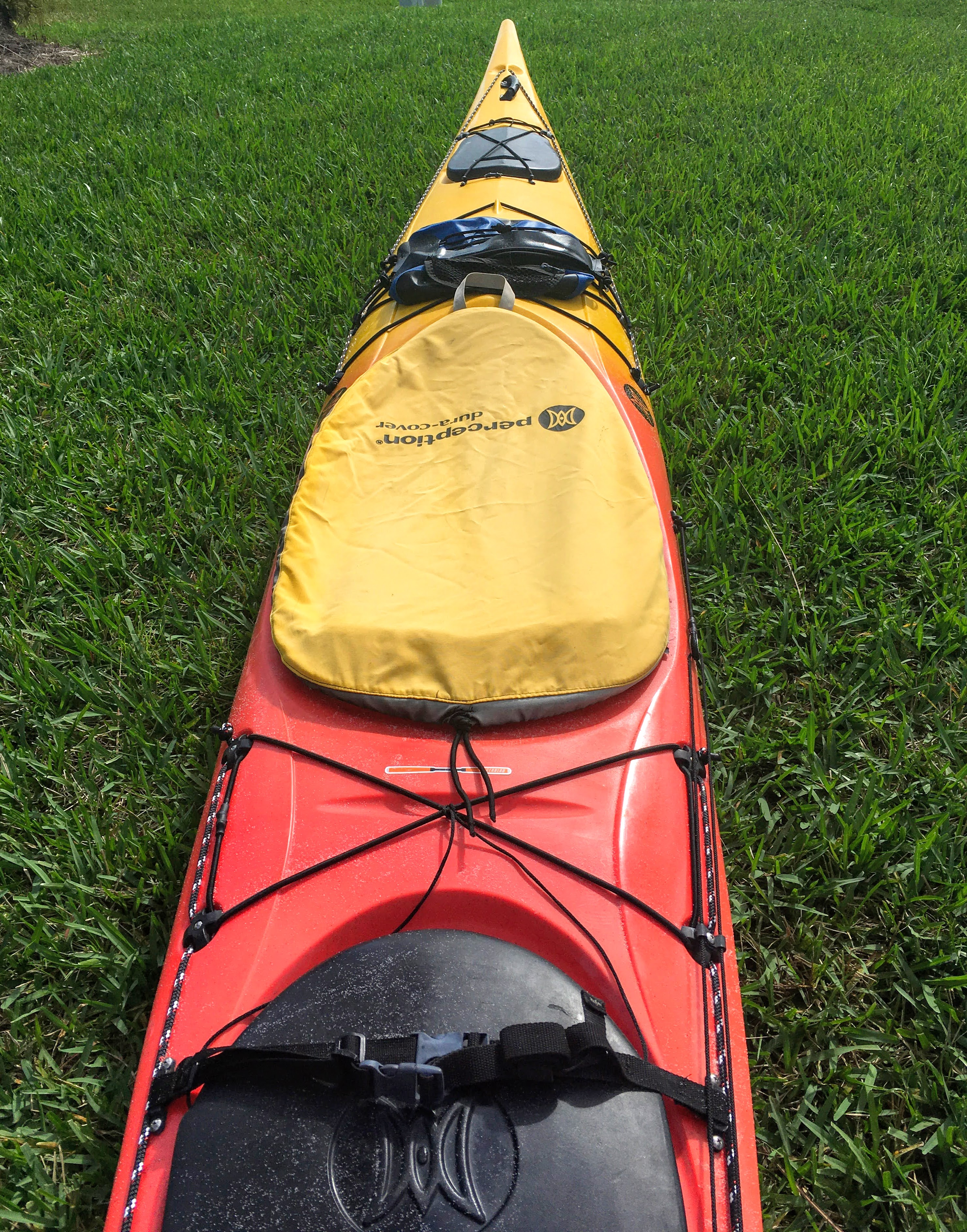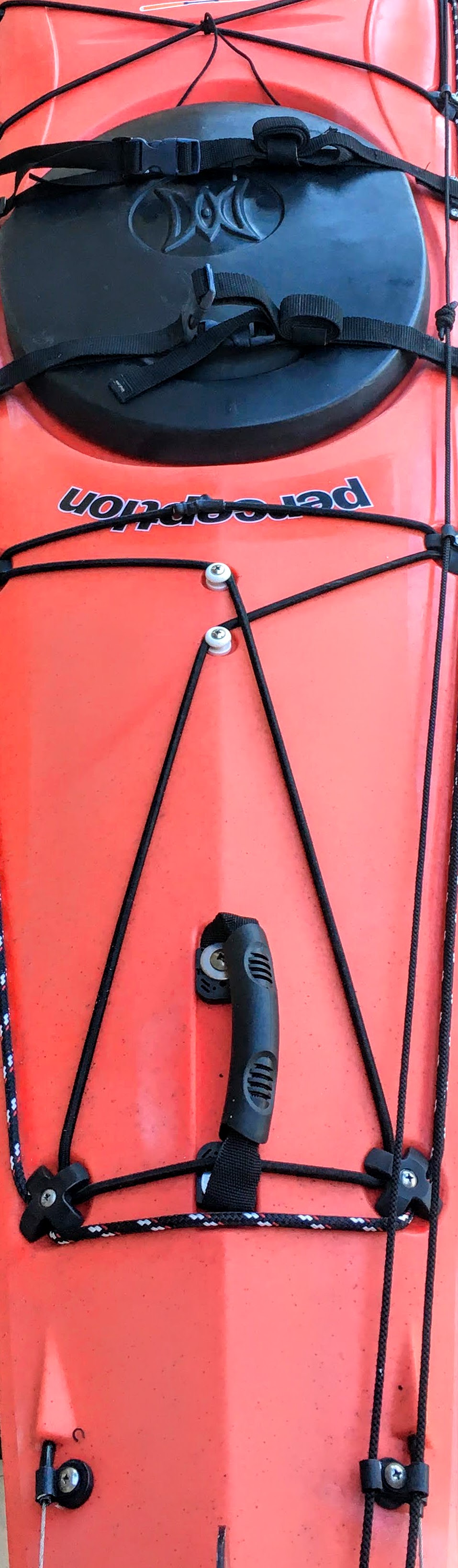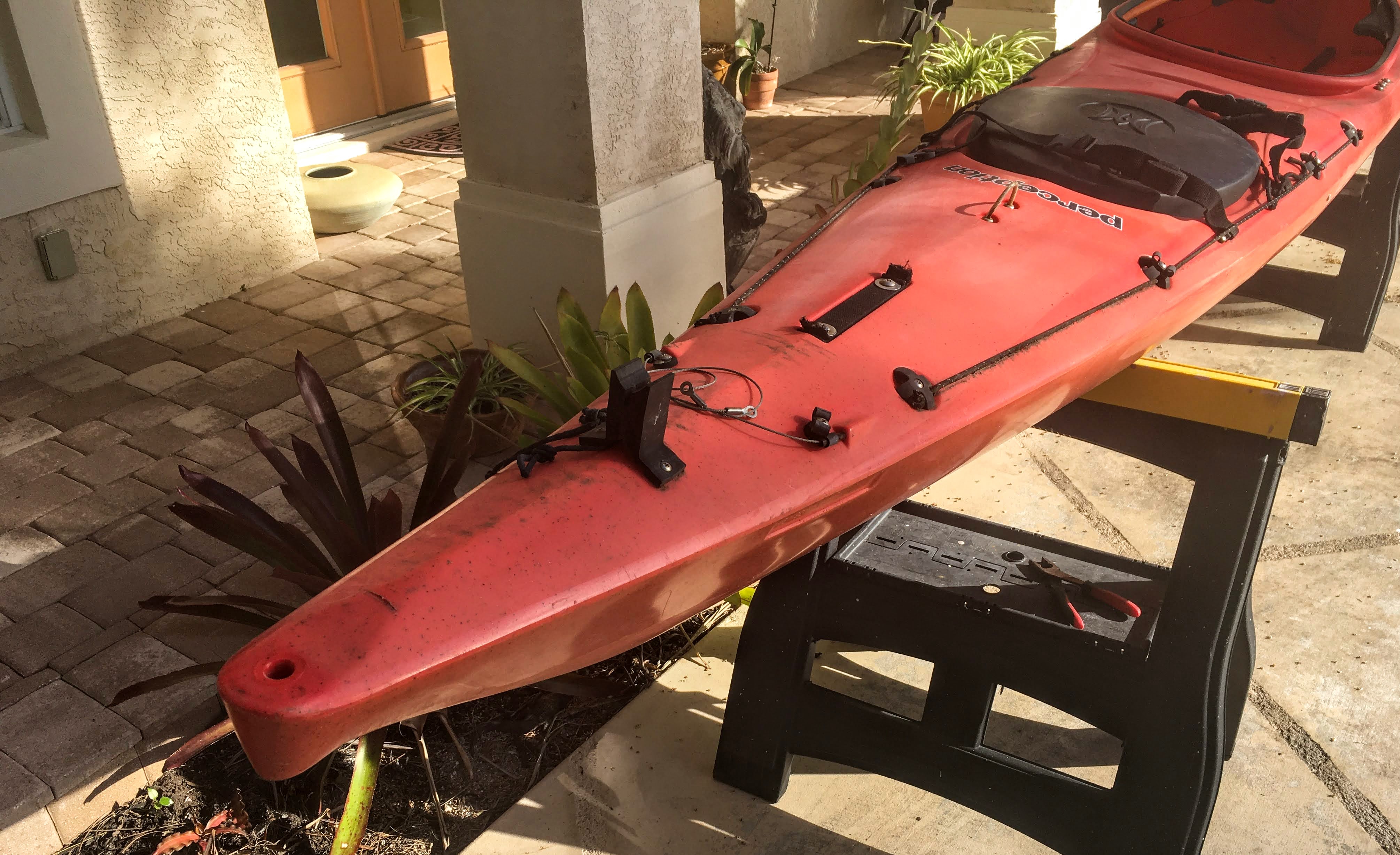 I bought this Perception Eclipse Sealion along with a Perception Shadow. Both were in great condition although both rudder blocks and clevis pins were missing, along with the Eclipse rudder rest. The seat-backs, deck roping and bungee cording on both boats were shot and needed replacement.