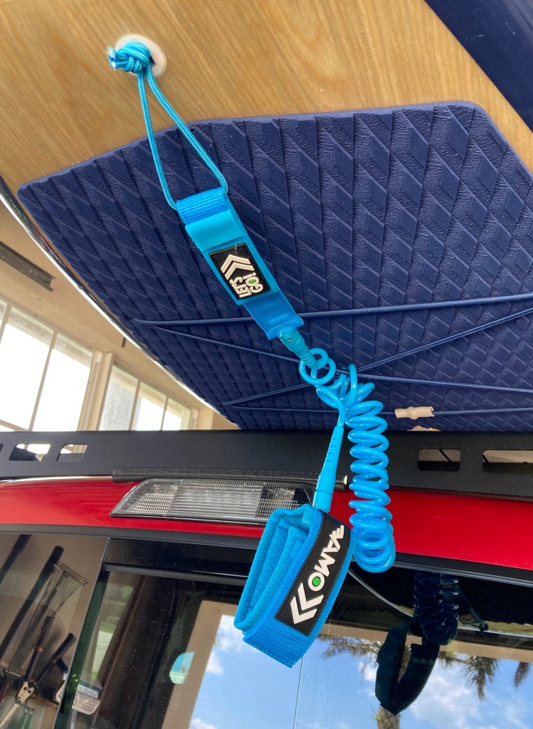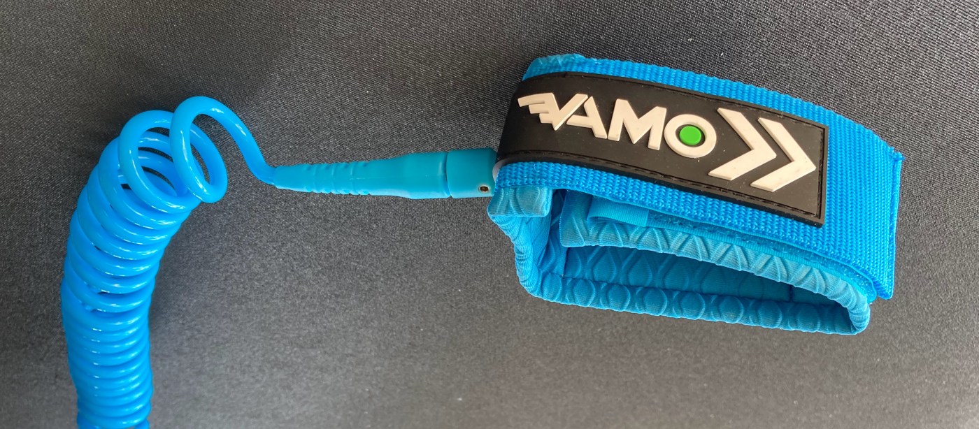 For my 11.6 ISLE Voyager, I selected a VAMO Life 9′ leash, which I purchased from Native Water Sports in Jensen Beach, FL. This leash is well made and functional. The finger grab on the ankle velcro makes it easy to unleash without having to look down and the ankle padding is very comfortable on the skin. This leash has two silicon swivel connectors that keep it from looping as well as protecting the rails of the board. The coil keeps the leash back and away from the paddle. I selected the 9′ length which seems to be ideal for this board. The 8′ felt a little too taught for my Longboarding life of walking a board. Comes with a matching leash tie.