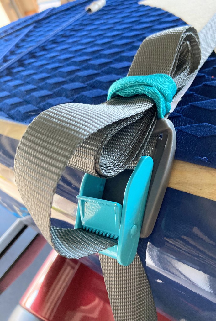 I looked around on amazon and tried to purchase some COR surf straps, but for some reason the order was canceled and the items were returned to sender before I ever received them. So back to Amazon. I saw these Earth River SUP Straps and truly believe things happen for a reason, because these straps have two features I never thought of when looking…. 1) The Teflon pad under the metal clip to prevent scratching the rails of the SUP