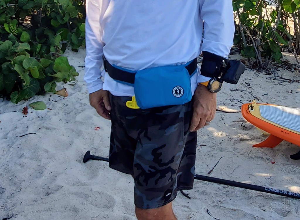 I prefer to thoroughly test my products for a month or two before writing a review. The Mustang Survival PFD (Personal Flotation Device) I’m reviewing is characterized by its minimalist design and functional form. The material and construction of this product is robust. This PFD is best suited for the inland Waterway SUP rider, and individuals who are comfortable with swimming. With many State PFD requirements, this product is easy to wear and easy for waterway patrol officers to see. Comes in Blue (as shown here) and Admiral Grey. Bright colors for safety gear is how I roll.